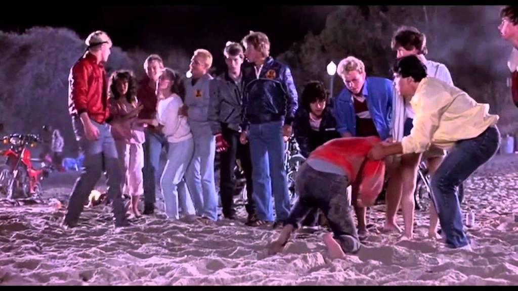Now onto the beach. Dude…Ally was hot. But come on, Daniels only been in town for 24 hours, and knew her for 5 minutes. 2 Exes fighting. Looks like baggage to me. Time to move on. In 30 seconds Johnny already proved he can kick his ass…well. But scrawney little Daniel had to show Freddy and the gang that he’s a kung fu master. Throws his little punch and holds out his hand to shake (why do good guys always do that shit?) Johnny is now obligated to put his ass down. Daniel doesn’t even know any of these guys. He imposes on a world he knows nothing about. Butt out kid.